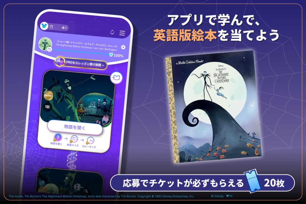 英語・英会話アプリ「ディズニー ファンタスピーク」において、2025年9月17日(水)に[ショート版]『ナイトメアー・ビフォア・クリスマス』(ジャック)の作品を追加いたしました。さらに同日より、9月限定の学習応援イベントも開催いたします。