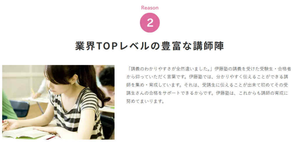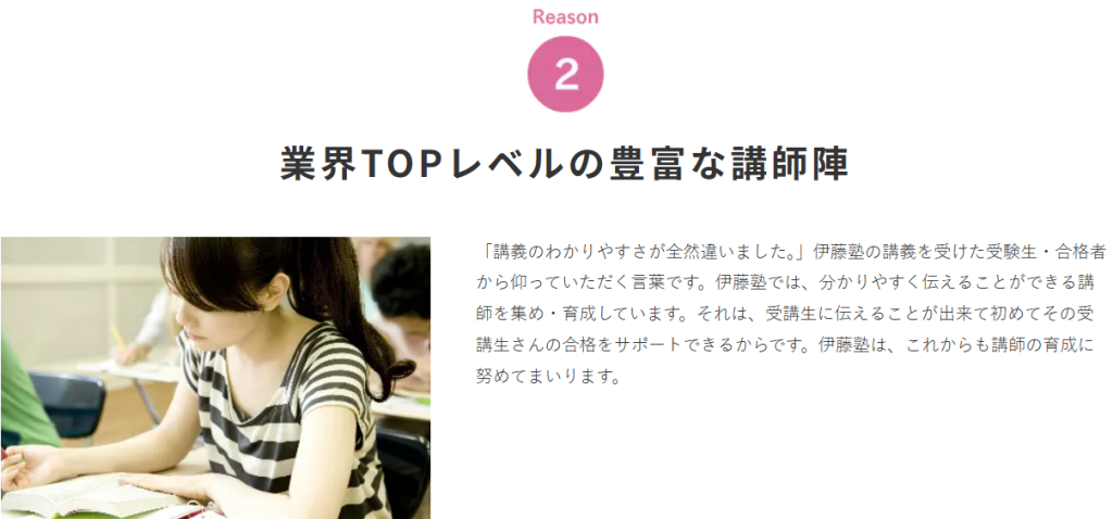 実際に伊藤塾は、「特に分かりやすく伝えることができる」講師の育成を重視しています。