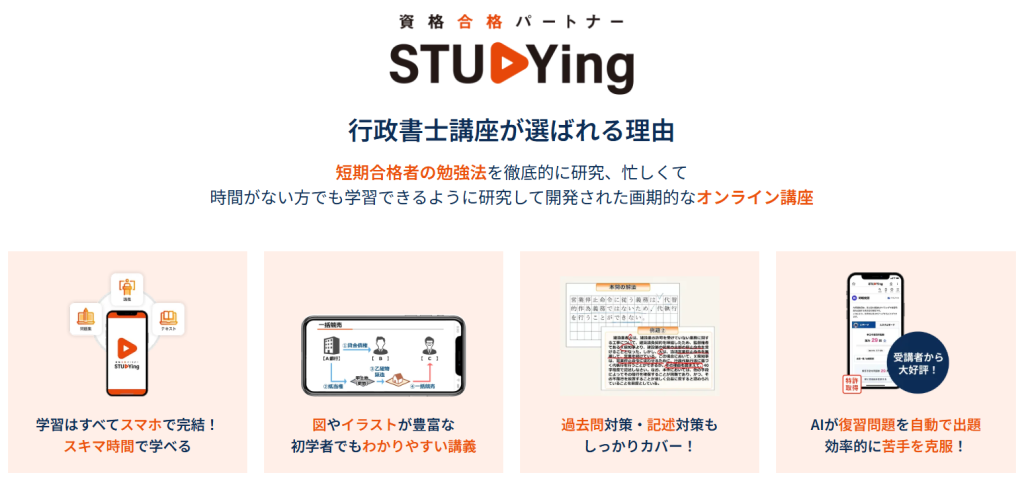 一方で、スタディングは決して安かろう悪かろうではなく、スキマ時間を活用した学習や、AIによる学習管理を積極的に取り入れている点が魅力です。