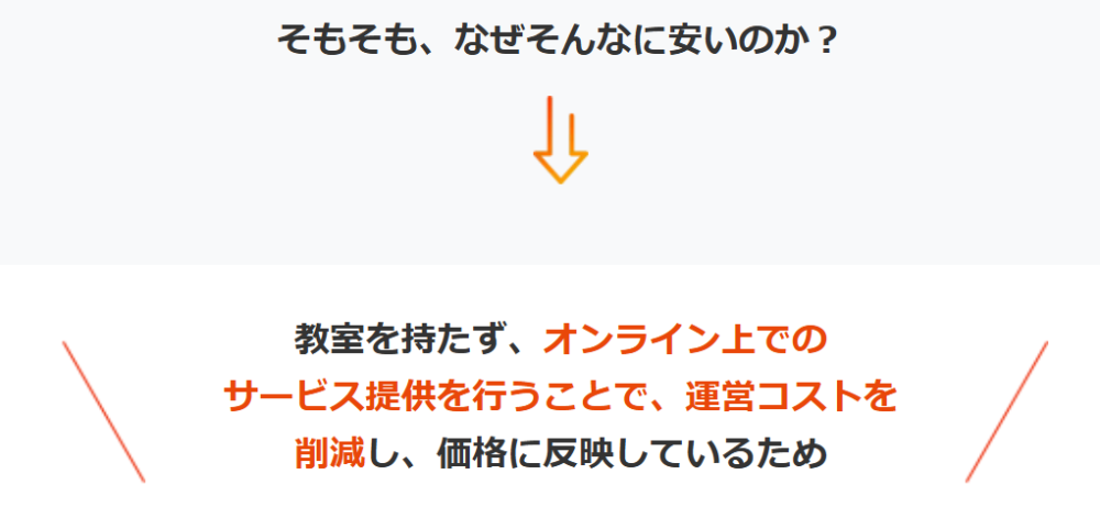 低価格を実現できた理由について、スタディングは運営コストを徹底して削減しているためだと説明しています。