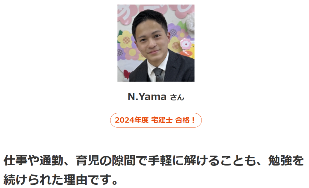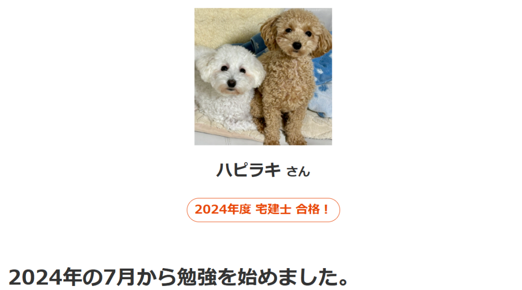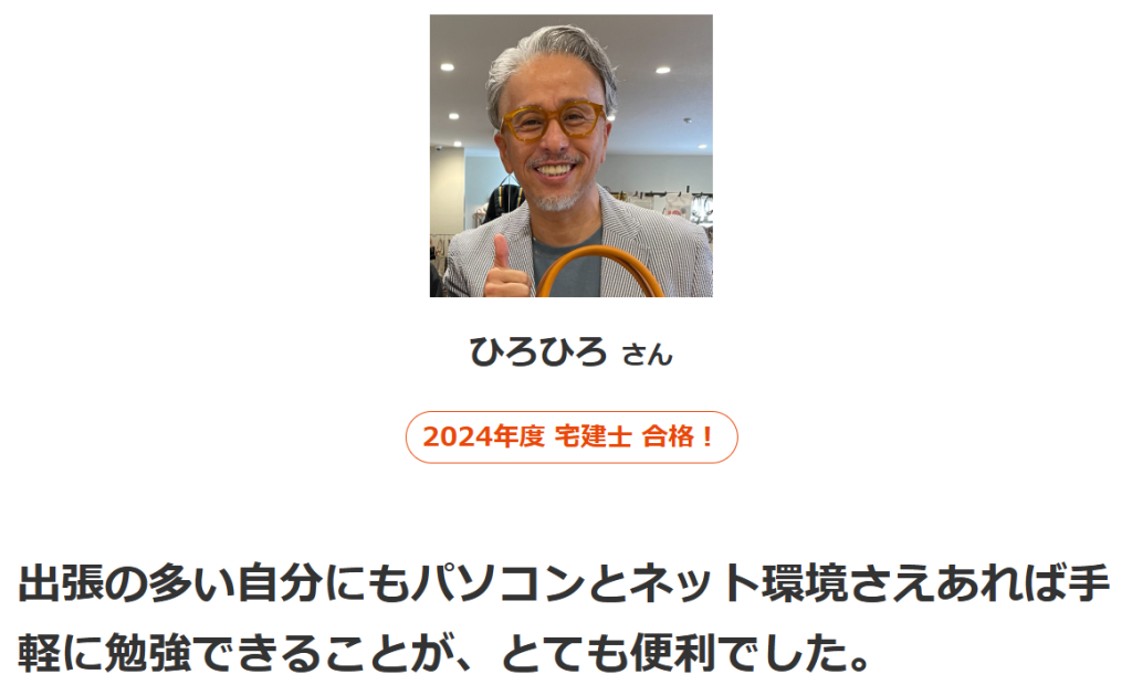 スタディングの宅建講座の公式HPには、実際に受講して試験に合格した方の声が多数寄せられています。