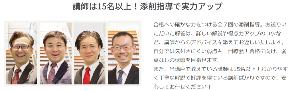ユーキャンの宅建講座にあって、スタディングなどの他の宅建講座にないものとしては、15名の講師陣による添削指導が挙げられます。