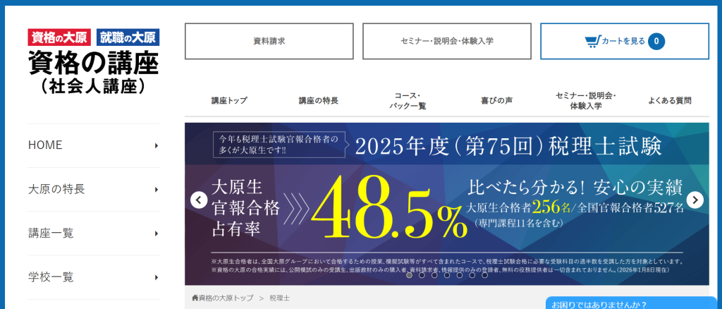 資格の大原(社会人講座)は、社会人・大学生を対象とした資格取得のための講座ブランドです。