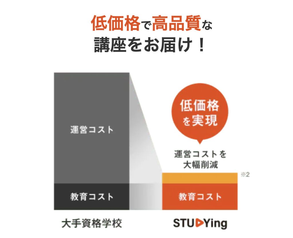 - 他社の通信講座とスタディングの講座を比較するとスタディングのコスパの良さが際立っている