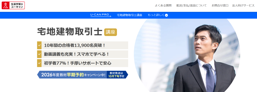 ユーキャン宅建講座は、過去10年間で12,974名の合格実績がある、信頼できる通信講座です。