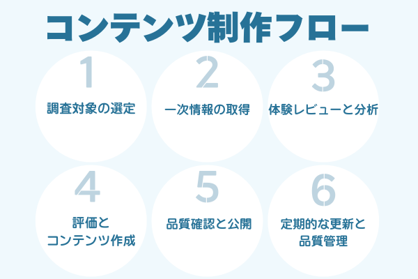当サイトでは、下記のフローに基づきコンテンツを制作しています。