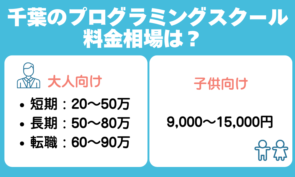 この章では、千葉県内のスクールを中心に、子供向けと大人向けそれぞれの料金相場をご紹介します。