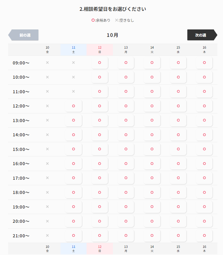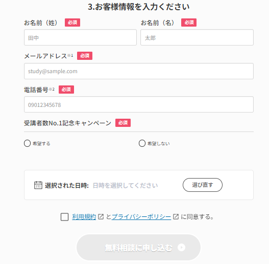 まずは公式サイトの無料相談フォームから希望日時を選択します。