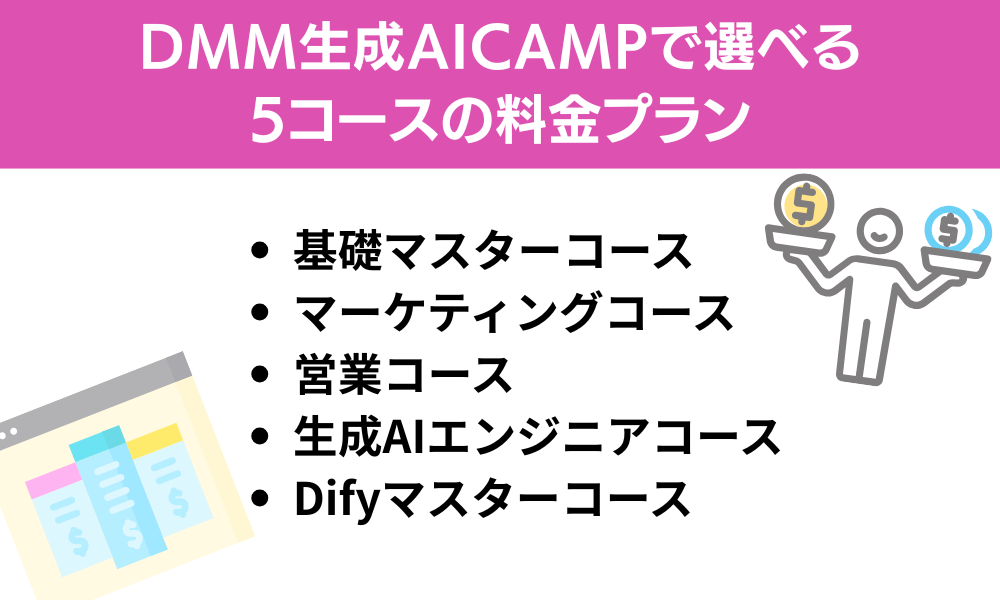 | DMM生成AI CAMP | 約19.8万〜49.8万円 | 最大70%還元 |