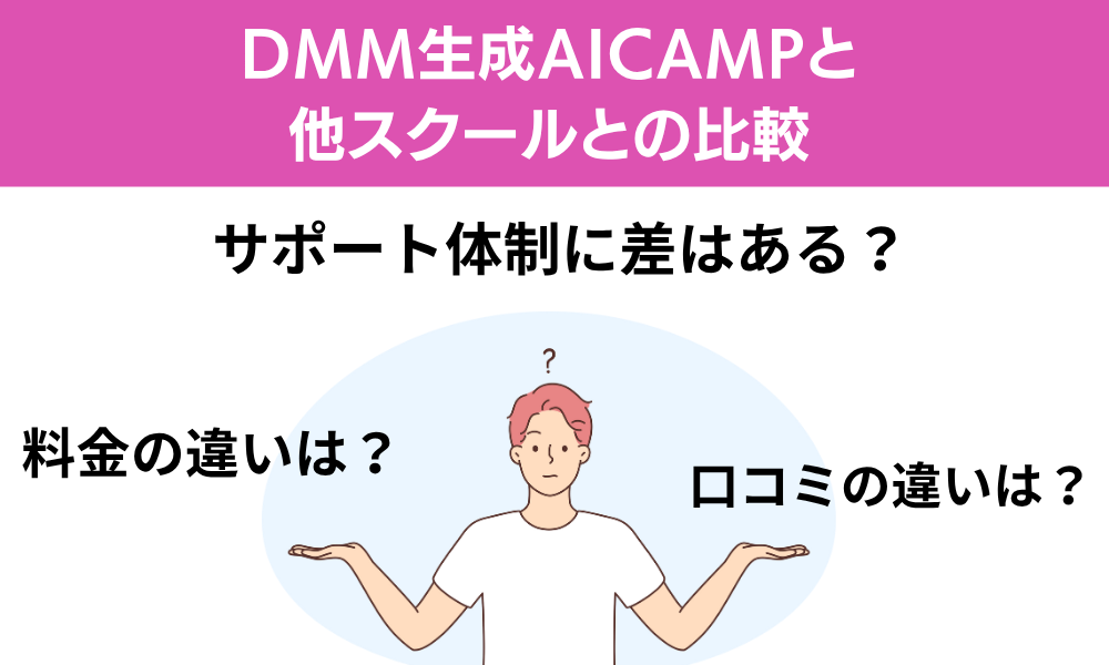 他スクールが学習支援や転職保証を中心としているのに対し、DMM生成AI CAMPは短期間で実務に直結するスキルを習得できることを最大の強みとしています。