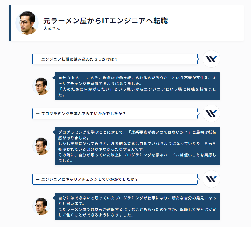 未経験から学ぶ場合の不安点や、転職を成功させるために必要な学習ステップなどを具体的に相談できるのが大きな特徴です。