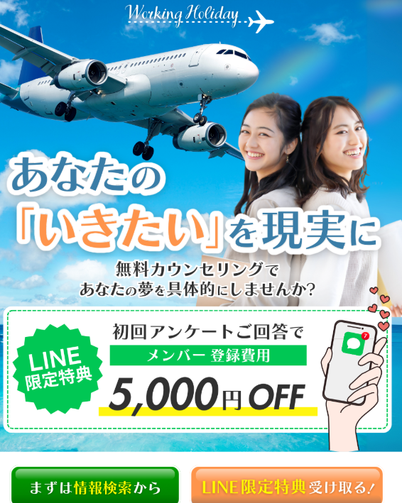 | 日本ワーキング・ホリデー協会 公式サイト | 基本手数料無料 毎日無料セミナーを開催 就職サポート |